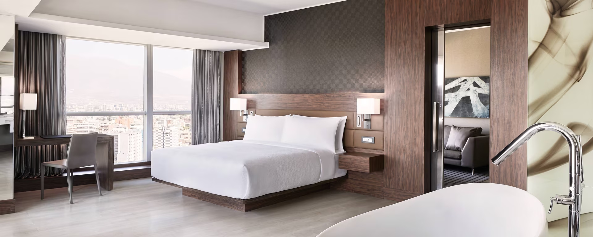 Proyecto de equipamiento completo FF&E y OS&E para hotel de 253 habitaciones, desarrollado por Cencosud y operado por Marriott International bajo la marca AC Hotels. Inaugurado en 2016, el hotel ocupa los últimos pisos de la Torre 4 del Costanera Center, con acceso directo al mall. Incluye lobby, restaurante, AC Lounge, gimnasio y rooftop bar con vista panorámica de Santiago. El diseño combina elegancia moderna, funcionalidad y conexión urbana en uno de los puntos más icónicos de la ciudad.