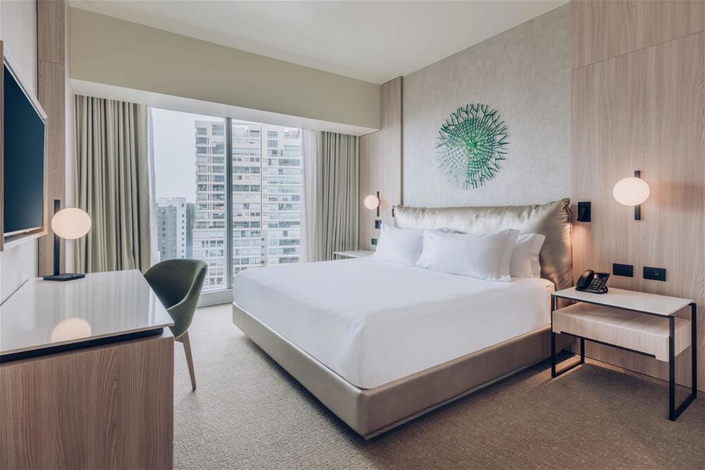 Proyecto de equipamiento integral realizado para el nuevo hotel de la cadena Iberostar en Lima, inaugurado en 2021. Se implementaron soluciones completas de FFE y OSE para 214 cuartos, zonas comunes, bar en la azotea, comedor y espacios para reuniones. El enfoque estuvo en integrar criterios de sostenibilidad y diseño moderno, en linea con los estandares globales de la marca. El resultado fue un hotel urbano con identidad local, operacion funcional y alto nivel de confort para el viajero actual.